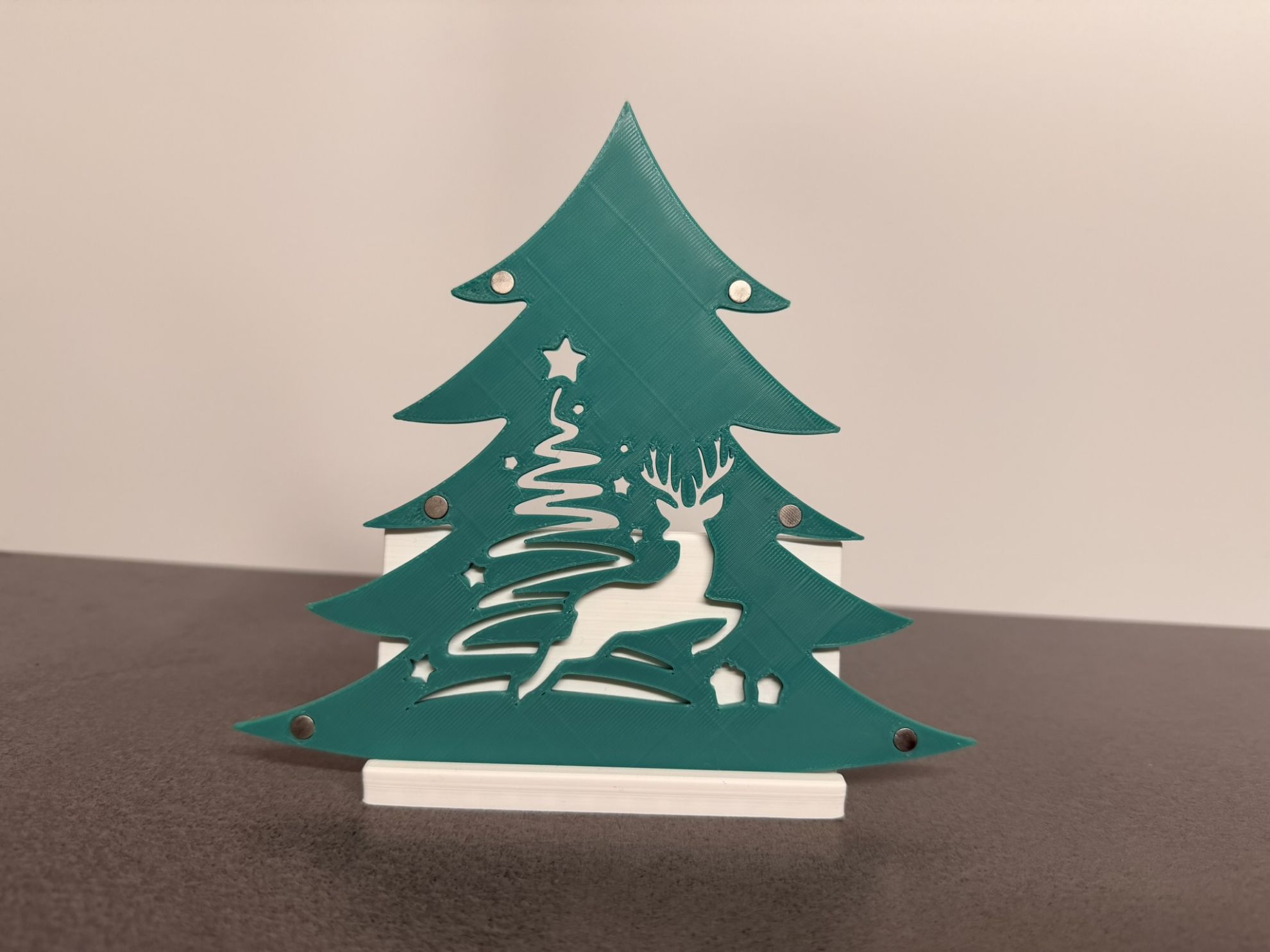 Motiv: „Christbaum“ – Hirsch unter einem Weihnachtsbaum