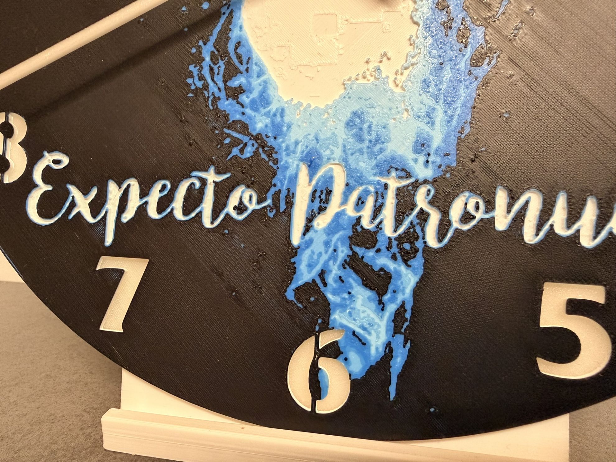 Tauche ein in die magische Welt von Harry Potter mit dieser einzigartigen Wanduhr „Expecto Patronum“! ⚡️Diese handgefertigte Uhr verbindet modernes Design mit einem Hauch Zauberei und ist ein echtes Highlight für jedes Zuhause – ob Wohnzimmer, Schlafzimmer oder Arbeitszimmer.