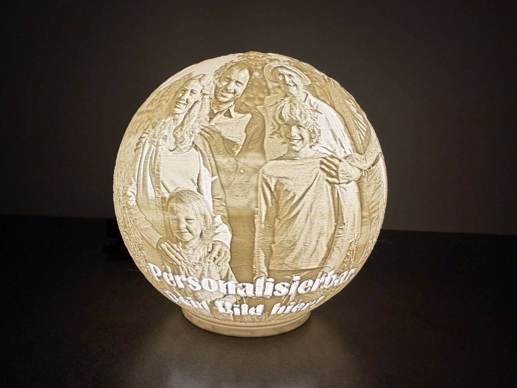 Die Leuchtkugel (Lithophane) ist ein stilvolles und persönliches Dekoelement, das deine schönsten Erinnerungen im besten Licht erstrahlen lässt.Erhältlich in drei Größen – klein, mittel und groß: