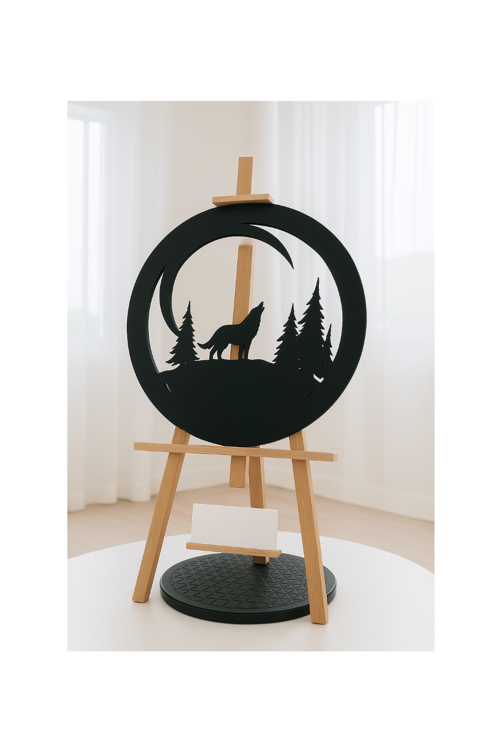 Die Motivplatte Wolfsgesang zeigt einen Wolf, der den Mond anheult – ein kraftvolles und stimmungsvolles Motiv für deine Ringlampe. Dank der magnetischen Befestigung lässt sich die Platte sicher einsetzen und ebenso schnell wieder wechseln – ganz ohne Werkzeug.