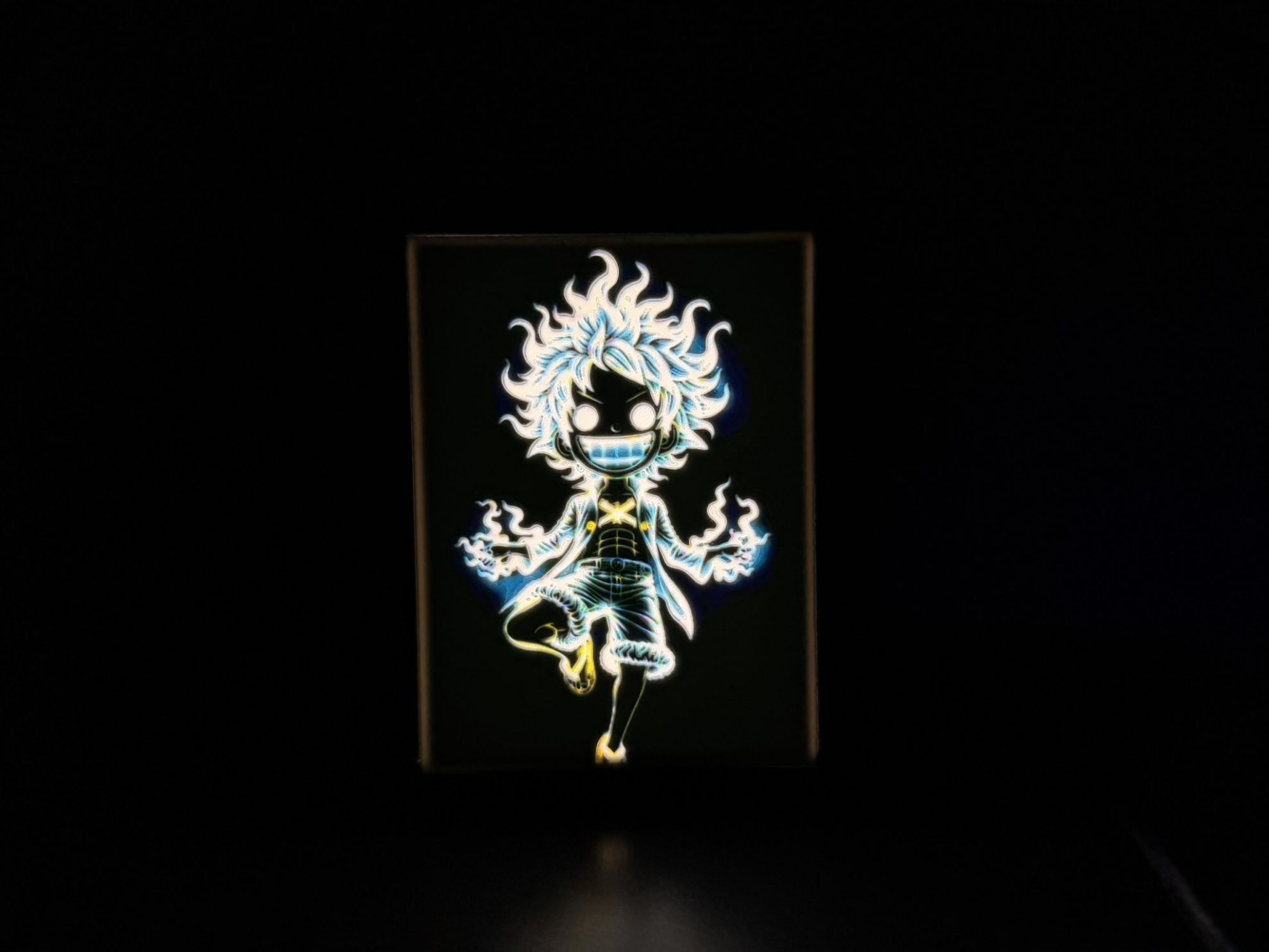 Der stabile Rahmen verleiht dem Lichtbild eine hochwertige Optik und schützt das Motiv. Dank des mitgelieferten Standfußes kann es direkt auf Schreibtisch, Sideboard, Regal oder im Gaming-Bereich platziert werden – ohne zusätzliche Montage.