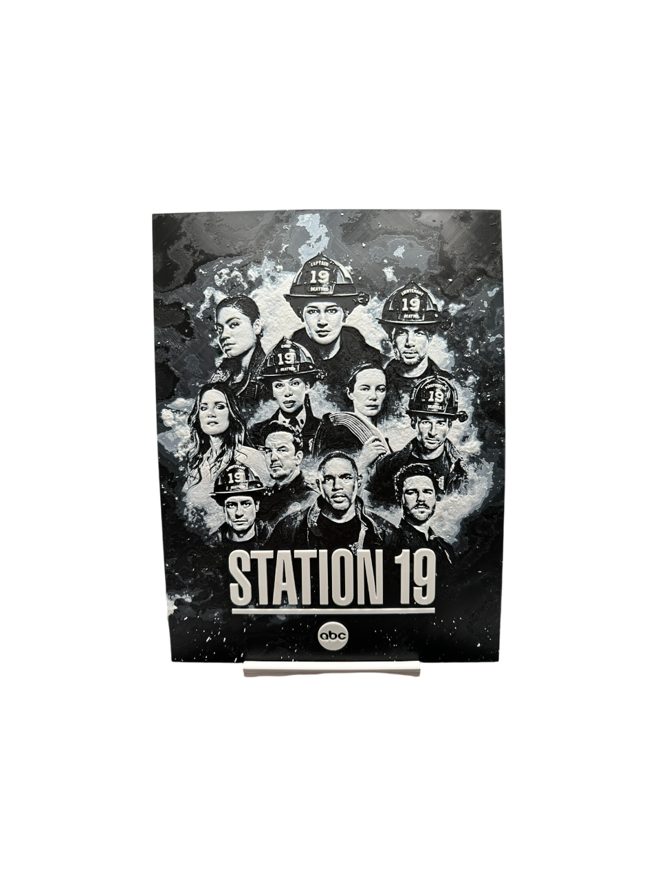 Dieses hochwertige Hueforge-Bild in Schwarz-Weiß bringt das emotionale Motiv aus der Serie Station 19 stilvoll zur Geltung.